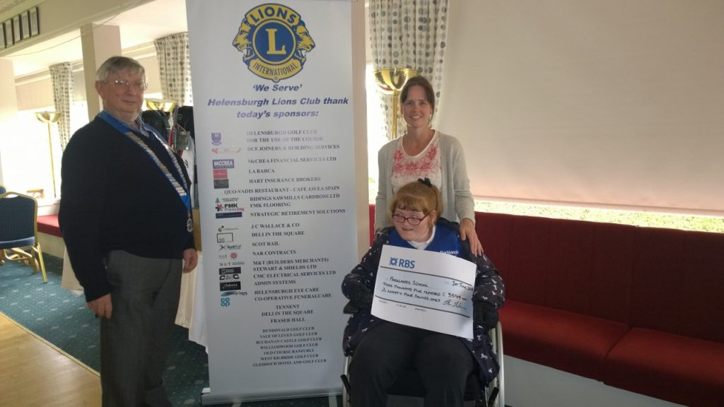 The Lions Club were delighted that Mia Ward, a pupil at Parklands School, and her mum Julia, Treasurer of the school Parent Council, came to the golf day to accept a cheque for £3594.  The money will be used to purchase six – Inclusive ClassMate with iSwitch -educational tablets which include special software and in particular facilities for use by the physically disabled.